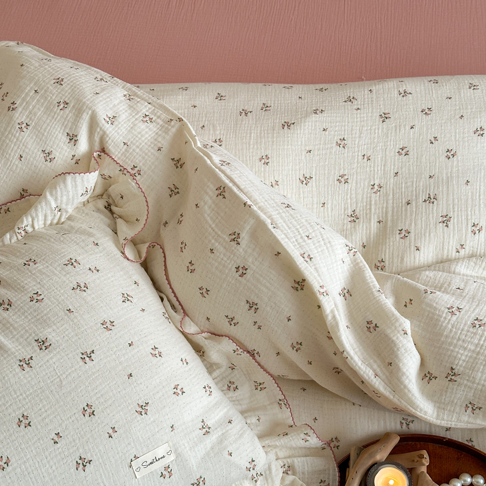 Whether styled with pink bedding accents, vintage-inspired decor, or natural wood furnishings, this floral duvet cover pink set complements a range of feminine interiors. Its quiet floral charm and soft tones make it equally suited for a girl’s room, a guest bedroom, or your personal sanctuary.