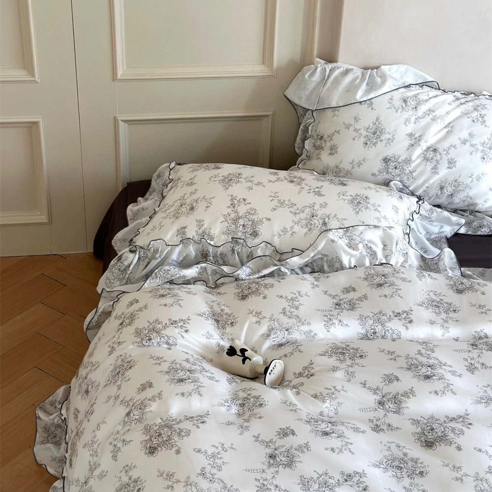 Lyocell Floral Ruffle Bedding Set – French Style Soft Luxury