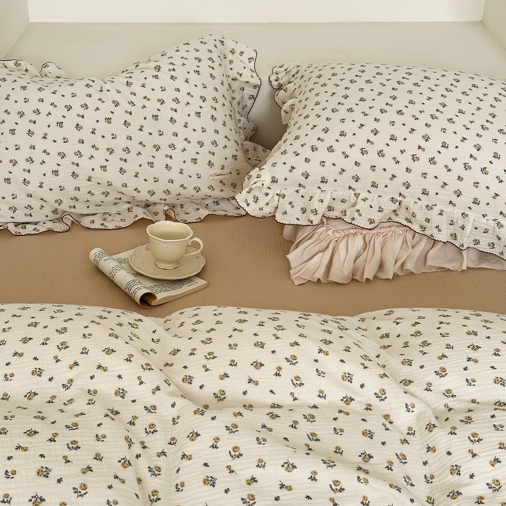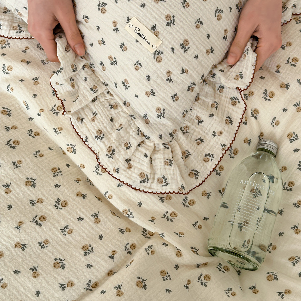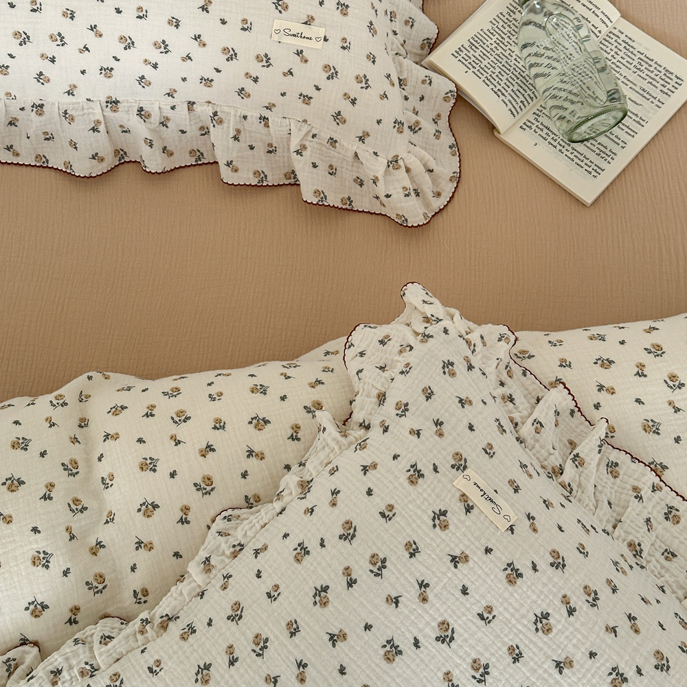 Turn your bedroom into a soft sanctuary with the Rose Floral Duvet Cover Set – Ruffled Cotton Muslin. Designed for those who love quiet elegance and natural charm, this set features a sweet and refined rose floral duvet cover, accented with romantic ruffle trims that elevate its vintage appeal. The delicate floral print in muted tones brings calmness and femininity to your space, without overwhelming your decor.
