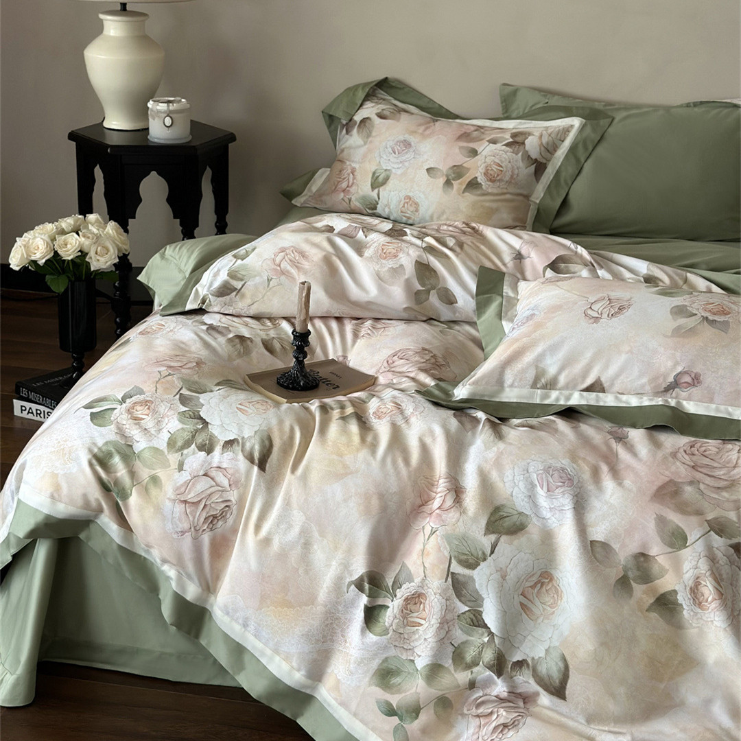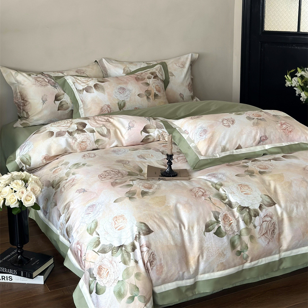 Add gentle elegance to your bedroom with this rose garden bedding set.